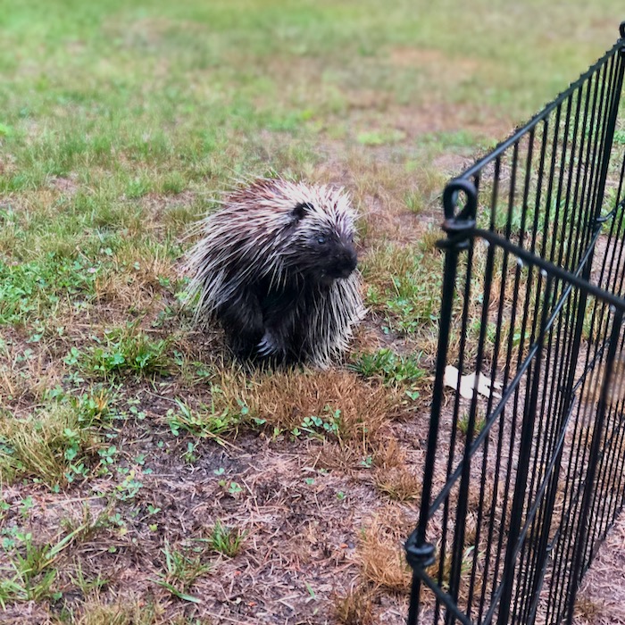 Turtle Hill is home to a porcupine that I have named Po. Most of the animals that we share this property with are only glancingly visible, but this summer Po chose to spend much of her time near the house. She enjoyed grazing on clover in the backyard and didn’t care a whit that a little dog was on the other side of the fence.